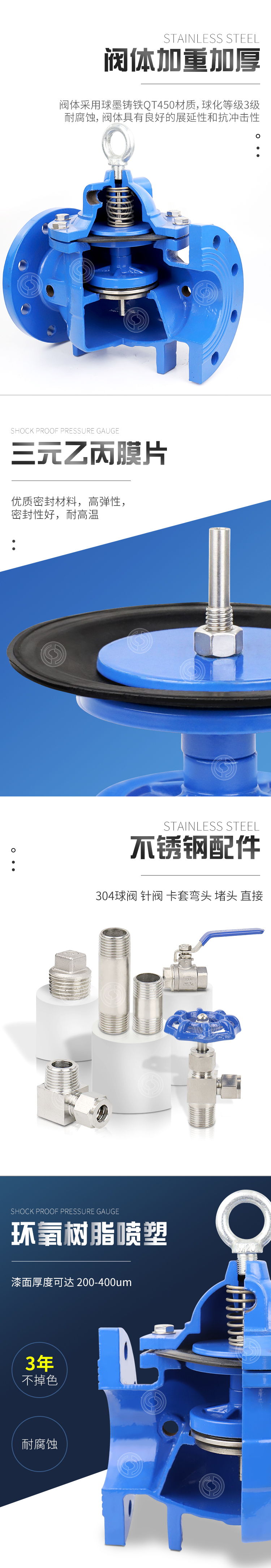 - 零部件及配件阀盖、阀体、弹簧、膜片、阀座、阀杆、配件