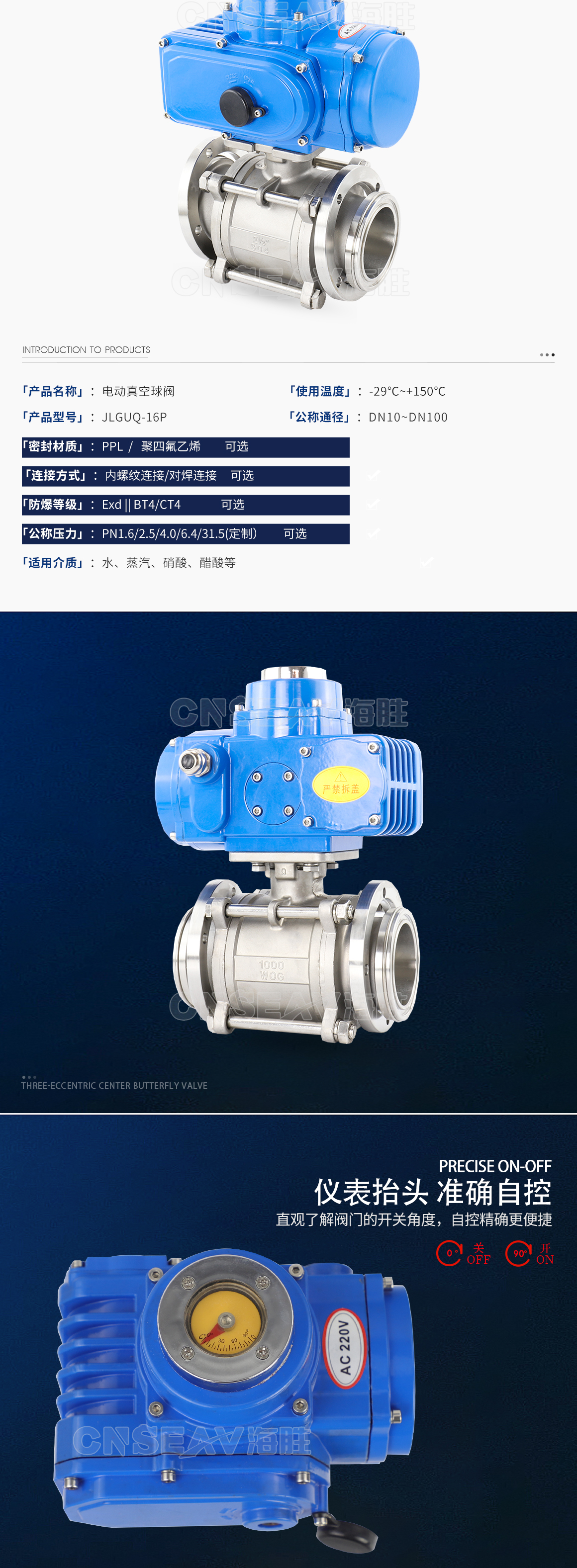 海胜电动真空球阀JLGUQ-16P主要技术参数
