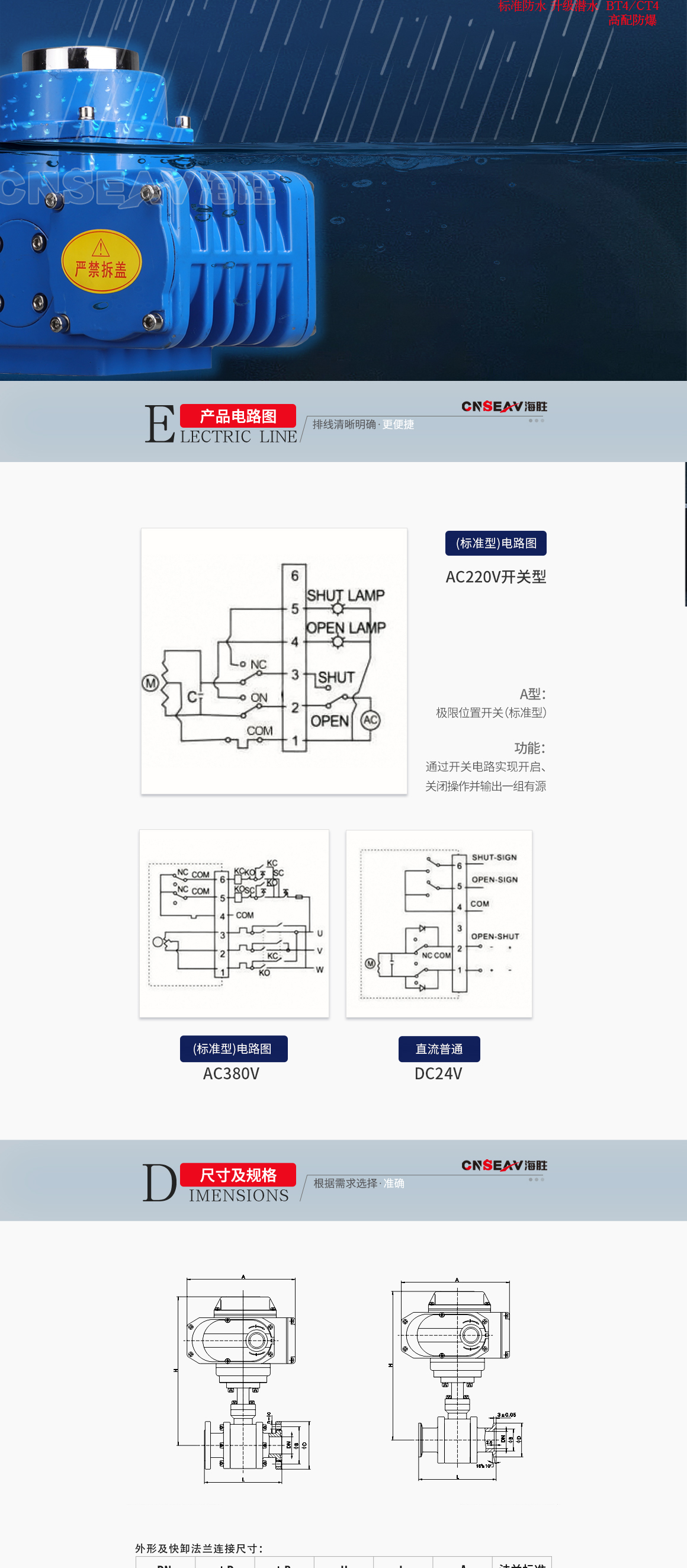 开关到位灯(开关两位置控制),智能调节(4〜20ma模拟信号控制)