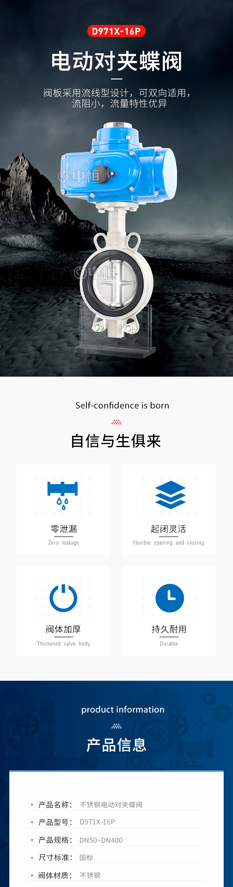 产品详情:不锈钢电动对夹式蝶阀D971X-16P北京冠龙品牌的主要特色: