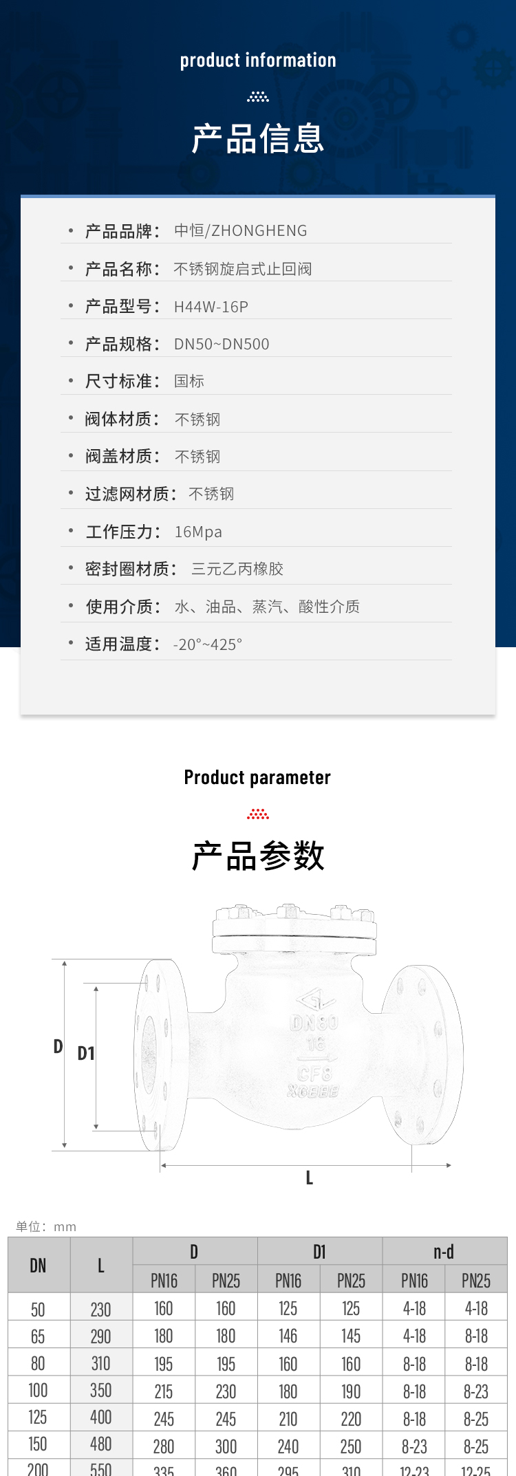 沪工不锈钢旋启式止回阀H44W上海工厂直销产品介绍: