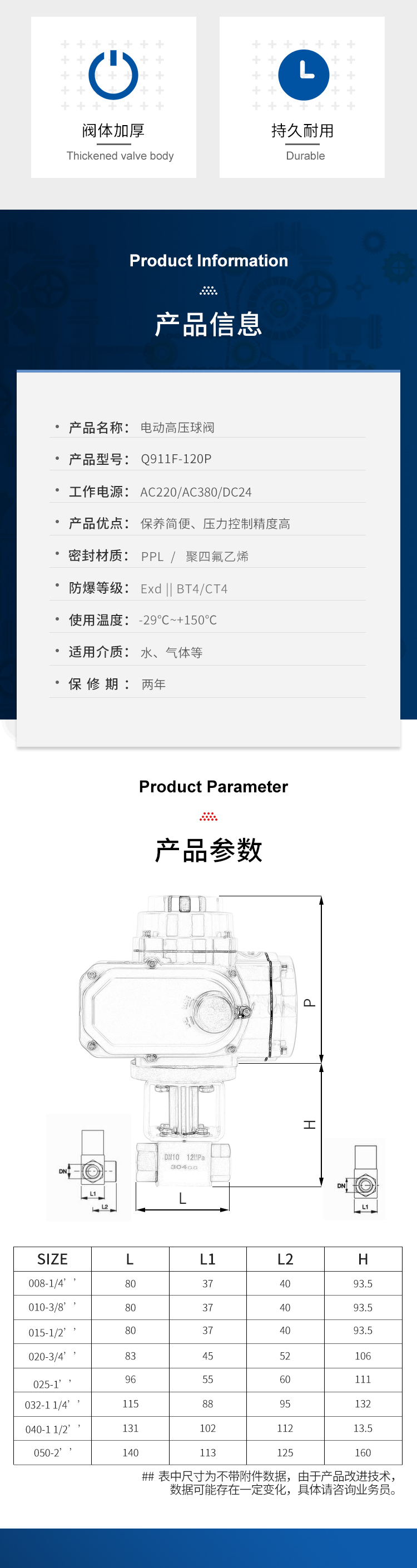 4.电动高压球阀体积小,重量轻,推力大,功用强,内置伺服放大器,操作简便,可靠性高。