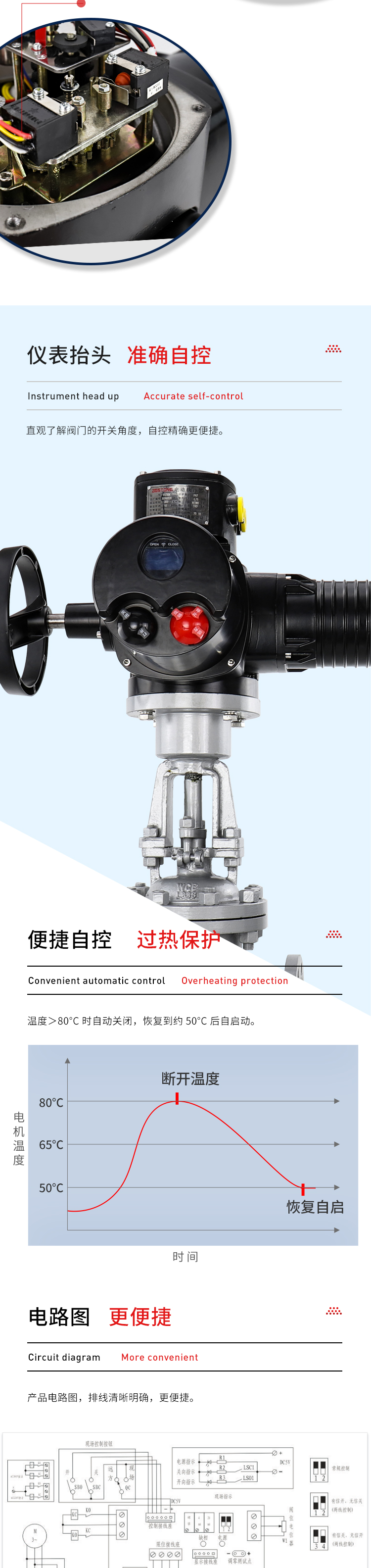 ⑧首次安装和调试时,须要手动将阀打开到大概一半的位置,以免由于马达相序的反向联接而毁坏阀或电气设备。