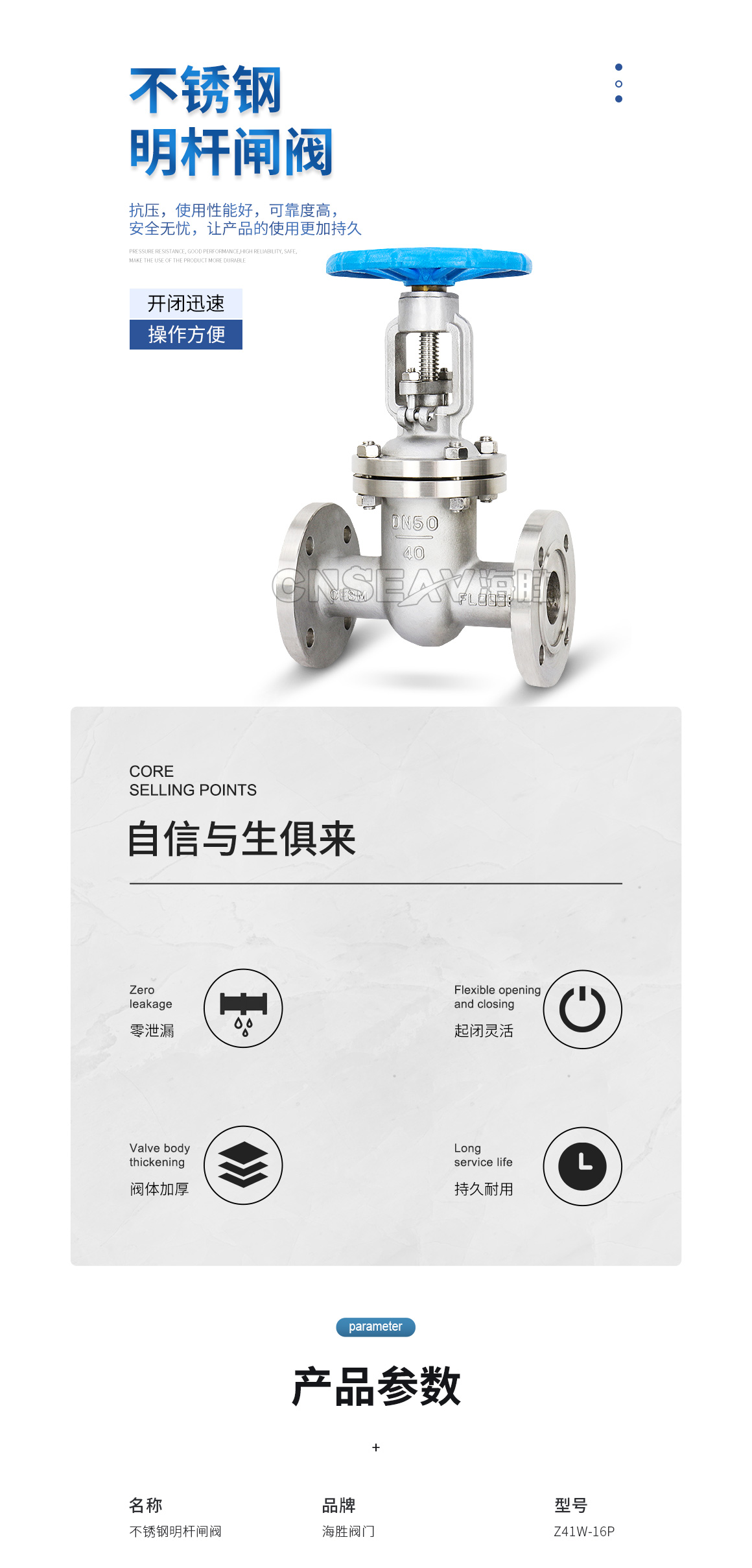 海胜不锈钢明杆硬密封闸阀Z41W产品的主要特性: