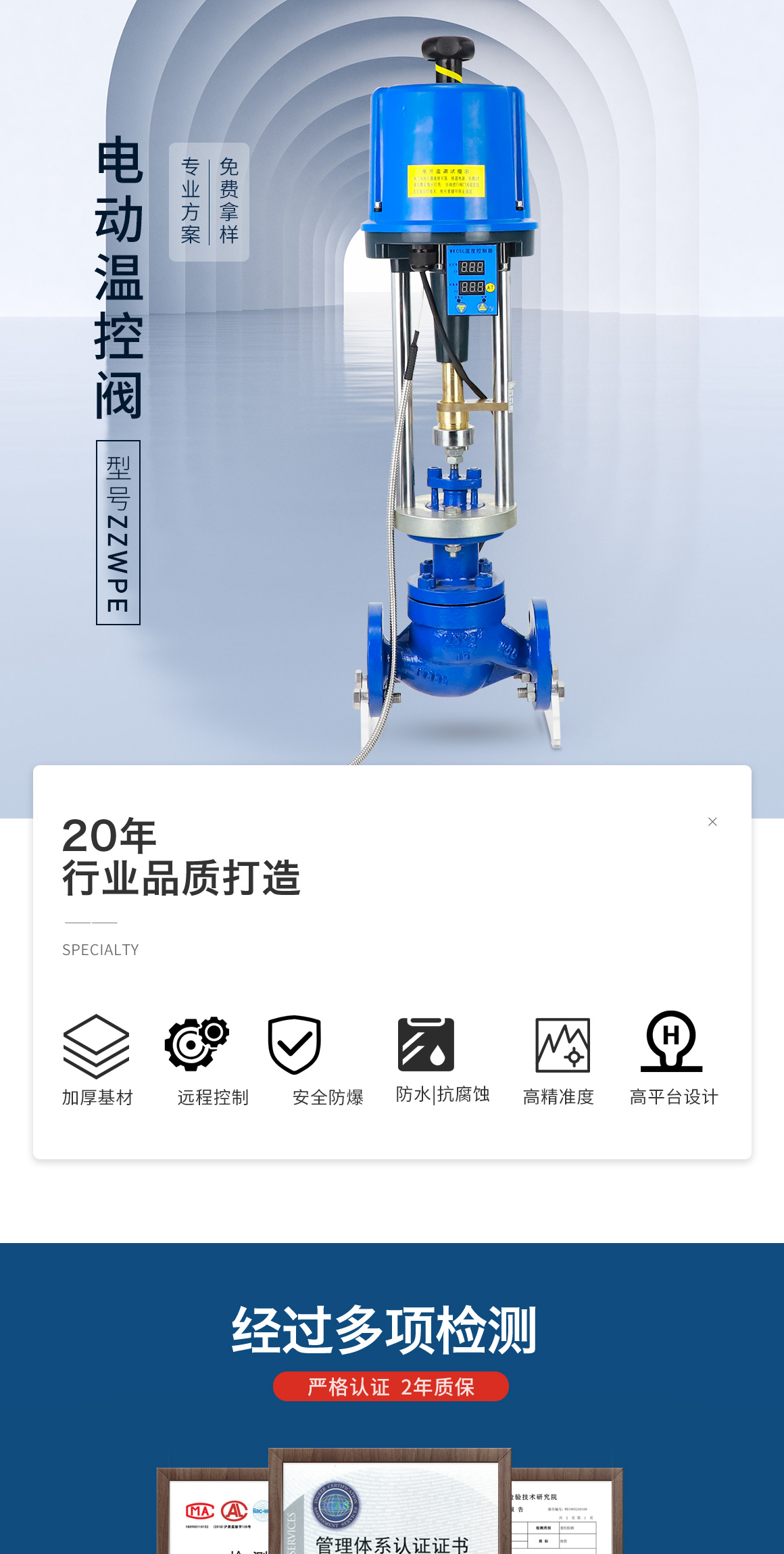产品详情:电动温度控制阀简称为温度控制阀,是流量控制阀在温度控制领域的典型应用。