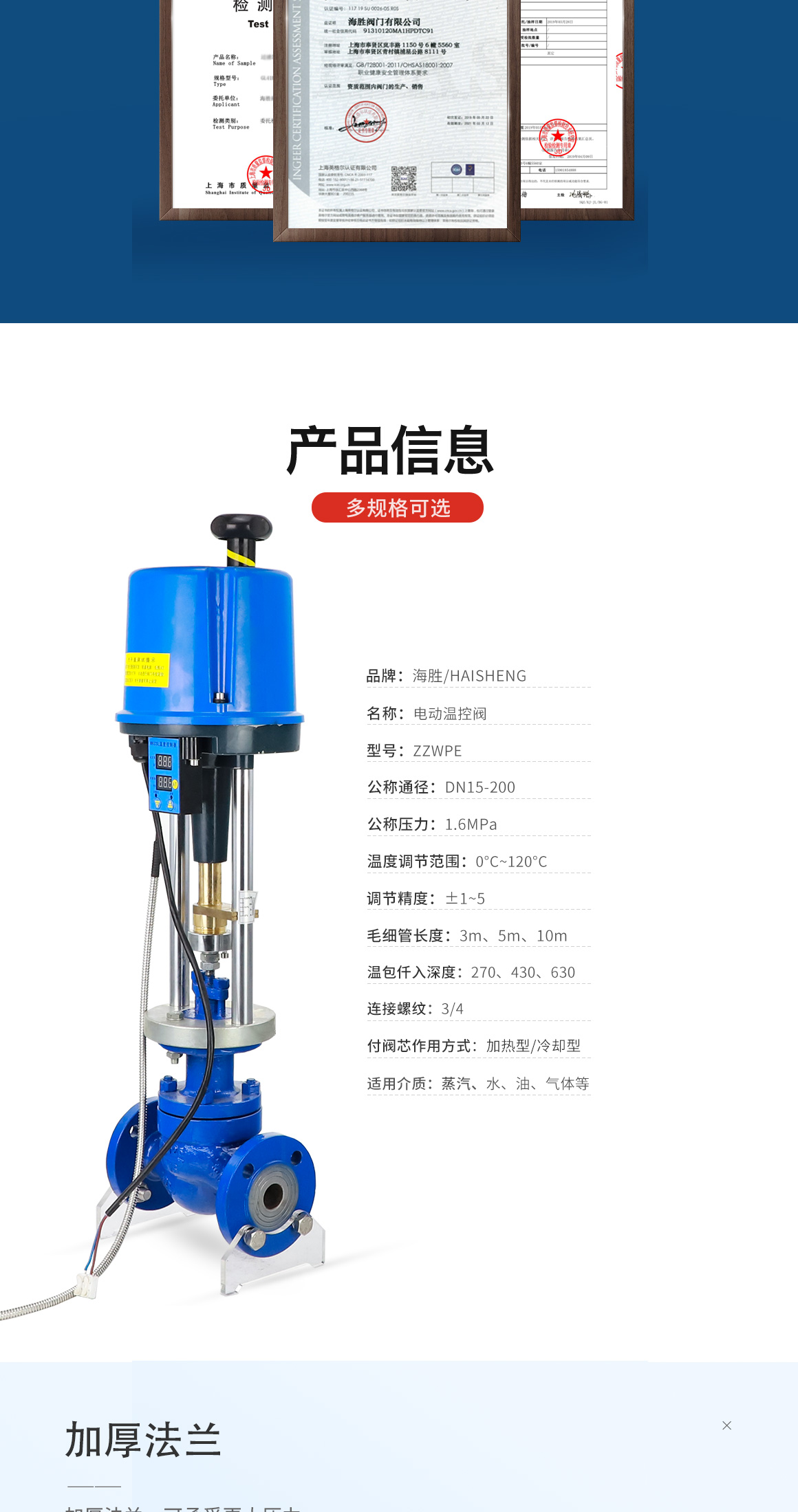 海胜电动温控阀zzwp优点:
