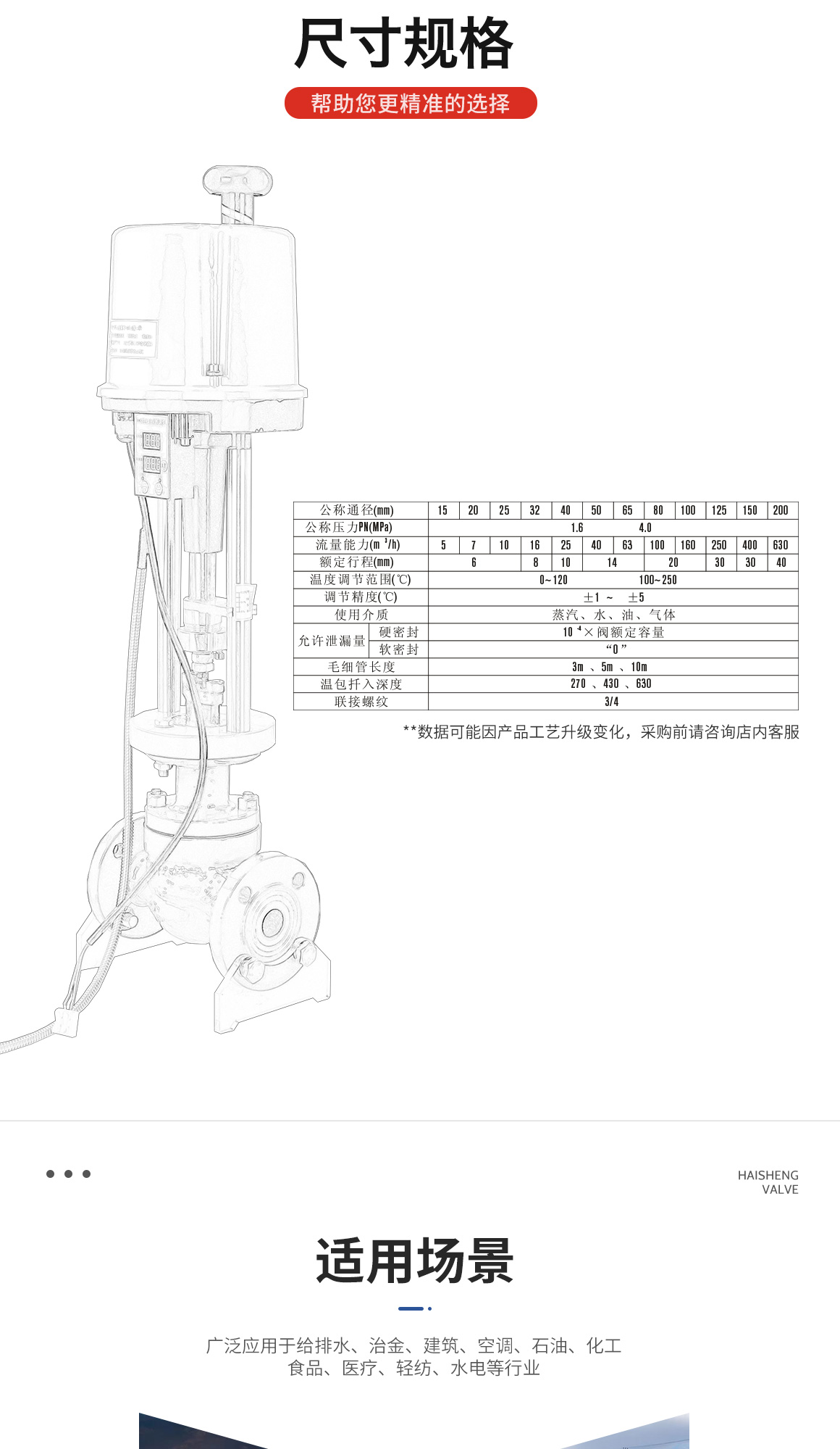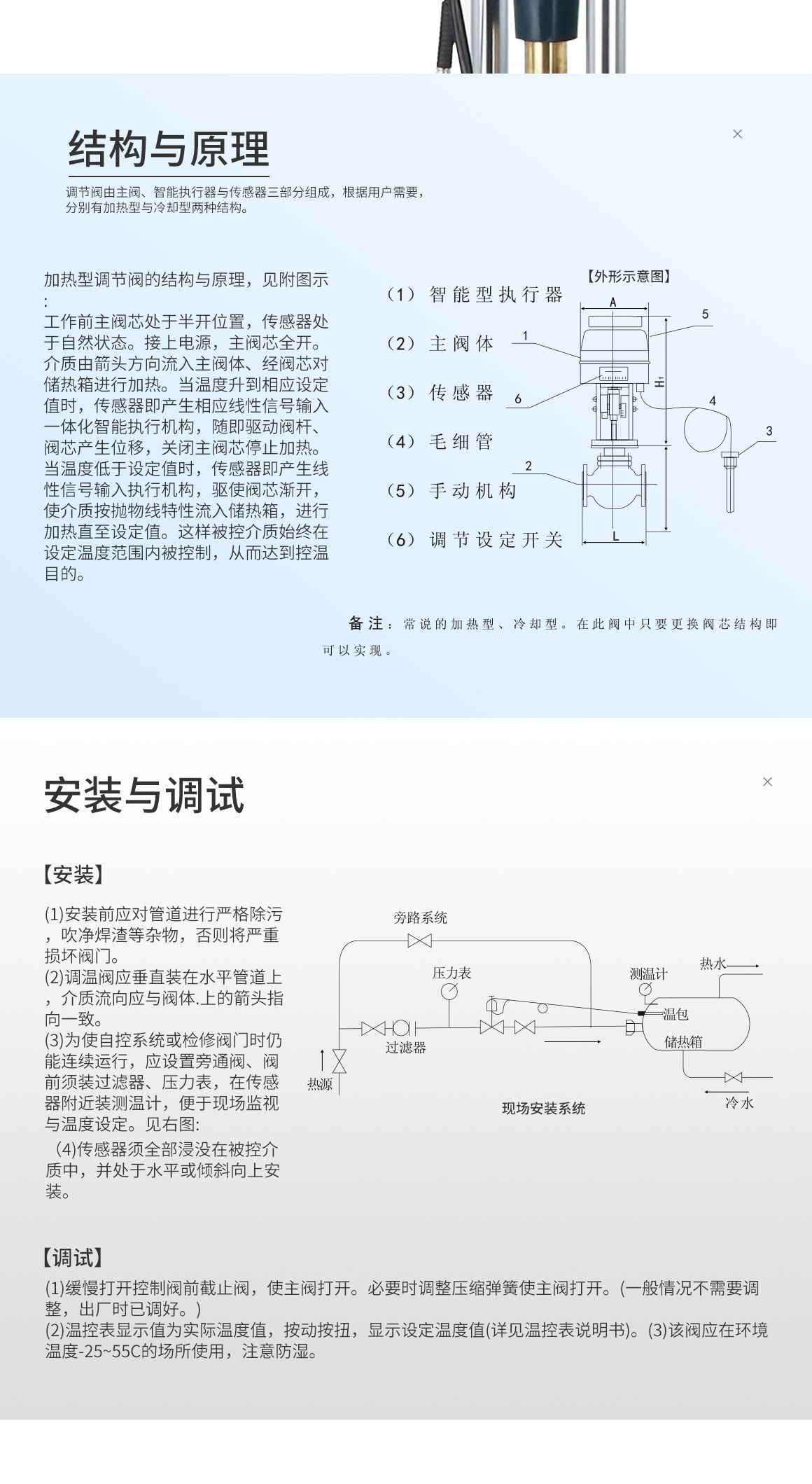电动温控阀具体积小,重量轻,连接简便,流量大,调节精度高等特征,普遍用以电力,原油,化工,冶炼,环保等工业过程的自动控制。防护,轻工,教学科研设备等行业中的系统。