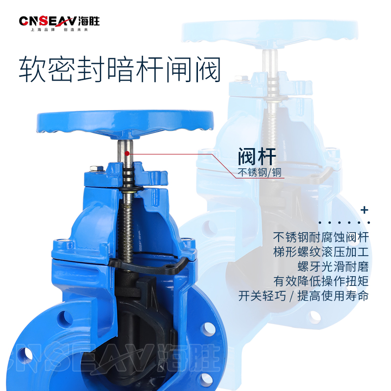 暗杆软密封闸阀克服了一般闸阀的缺陷,例如密封性差,疲倦,易生锈。软密封闸阀是传统闸阀的替代产品。它运用弹性浇口的补偿功用产生少量变形,以达到不错的密封功效。该阀具开关轻盈,密封精确,弹性记忆力好,采用寿命长等显著优点,可普遍当做自来水,污水,建筑物,食品,电力,医药等流体管道的调节截流设备。,冶炼,纺织,能源系统等