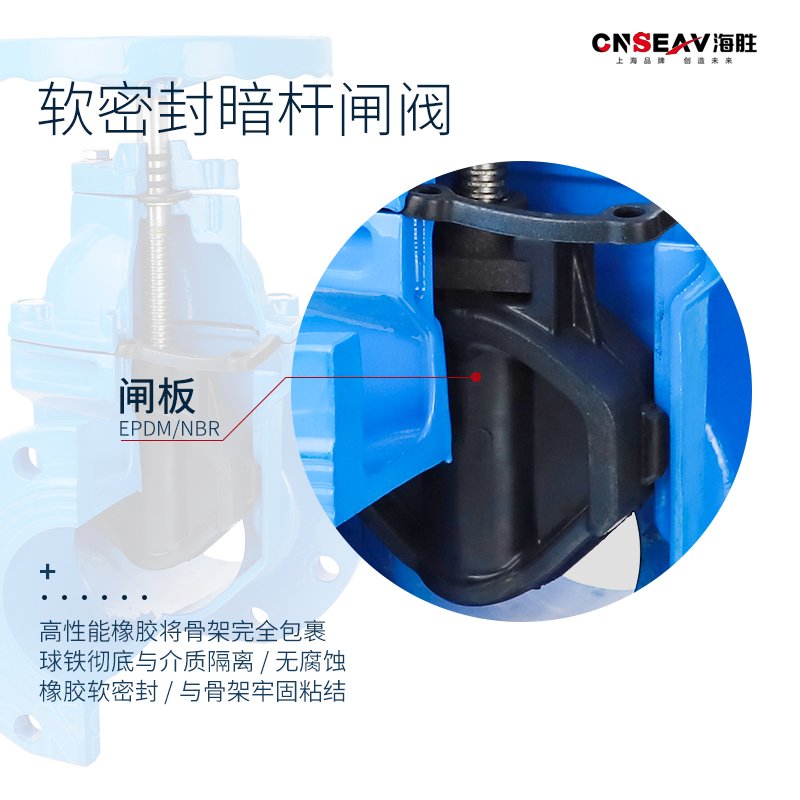 整体封装:阀板由优质橡胶制成,用以整体内部和外部橡胶。国产橡胶硫化技术使硫化后的阀板能够保证几何大小,并且橡胶与球墨生铁闸板稳固连结,不易脱落,并兼具不错的弹性记忆。