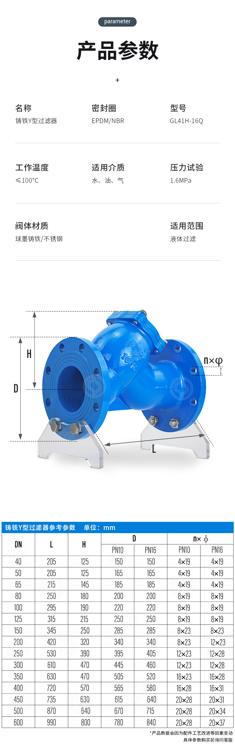 y型过滤器gl41h对水或油开展粗滤,并保存大于滤网的杂质。通常通水网是18-30目,40-100目滤网,通过油100-480目滤网,里面的滤芯可以根据用户要求制成,我们为您设计的滤网是“y”形的存储在舍入器y支系上。其安装方式为法兰connection,法兰的端面上有法兰,每个法兰3mm,便于密封。